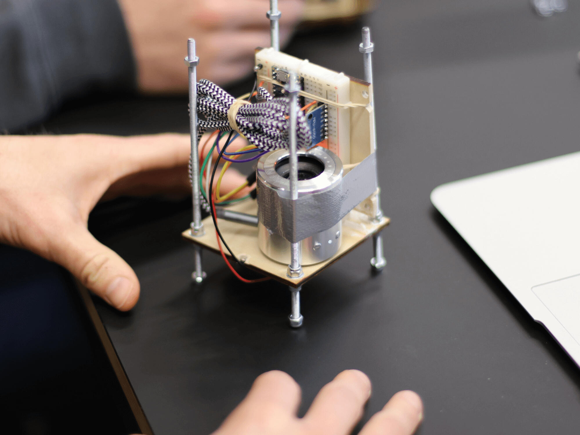 To make this vision a reality, we utilized 3D designs and pre-existing laser cutting patterns to develop the cube from a single piece of 3mm plywood. The technical components of the Memory Cube consisted of an Arduino Nano, accelerometer, MP3 player, speaker, and 9V battery.