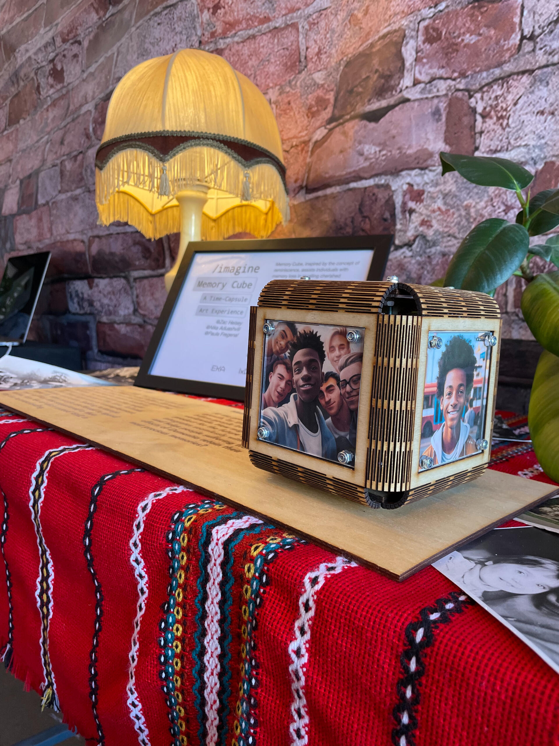 Exploring the potential challenges facing Tallsinki residents 100 years from now led us to the intersection of an aging population and social isolation, both of which are major contributors to dementia.At the predicted rate of dementia growth, there will be over 1 billion people worldwide living with Dementia by 2123.Our research into professional techniques used to combat memory loss due introduced us to Reminiscence Therapy. This approach utilizes tangible prompts such as photographs and music to evoke memories and stimulate conversation for those dealing with memory loss due to dementia.This simple, yet powerful idea of combining an image from a person’s past (e.g. a photo from their wedding day) with a relevant audio clip (e.g. the song from their first dance) provided the inspiration for our concept - Memory Cube.